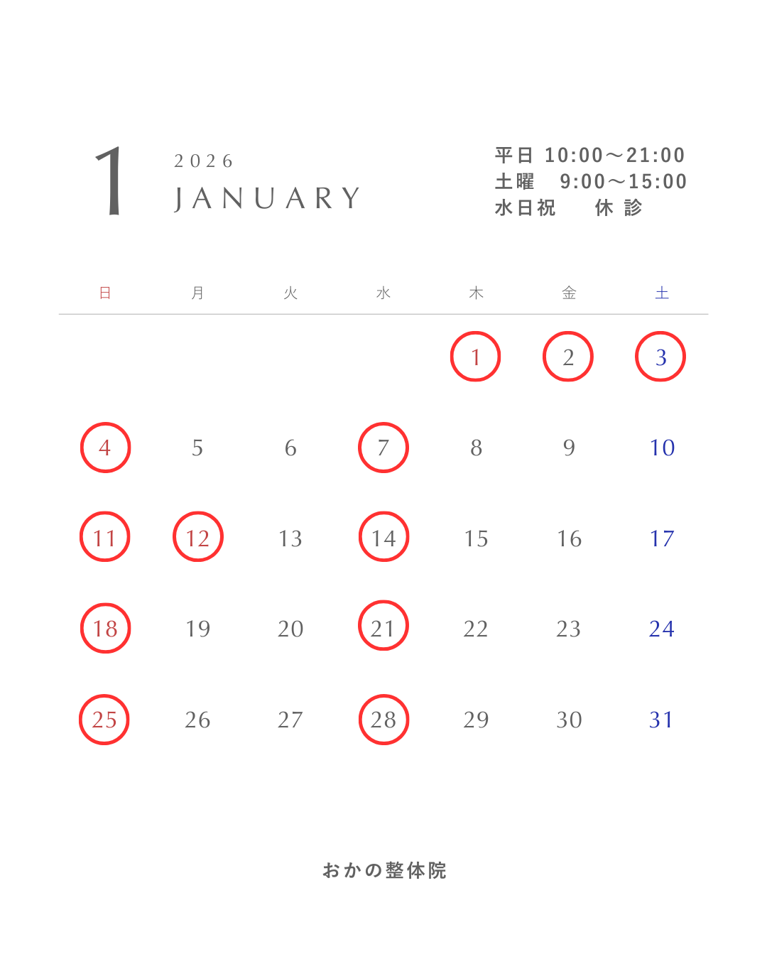 - 水曜・日曜・祝日